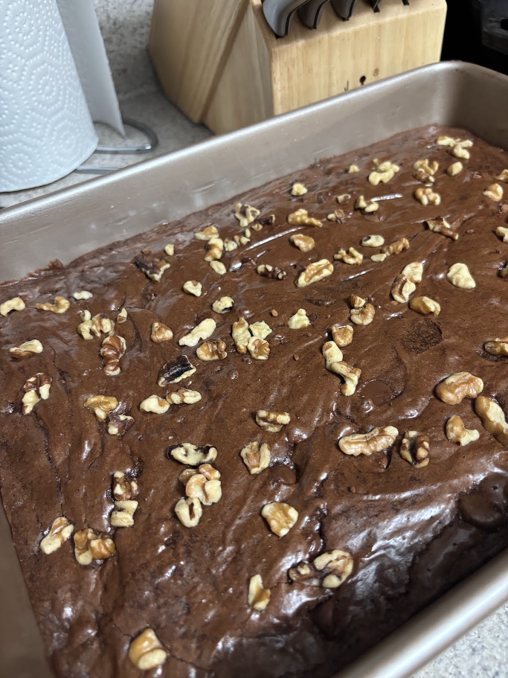 I doubled the recipe to accommodate a 9 x 13-inch pan & opted to top my brownies with walnuts before baking. I can’t stress enough how much we loved these bakery-quality gems. It will forever be my go-to when it comes to satisfying my craving for chocolate.