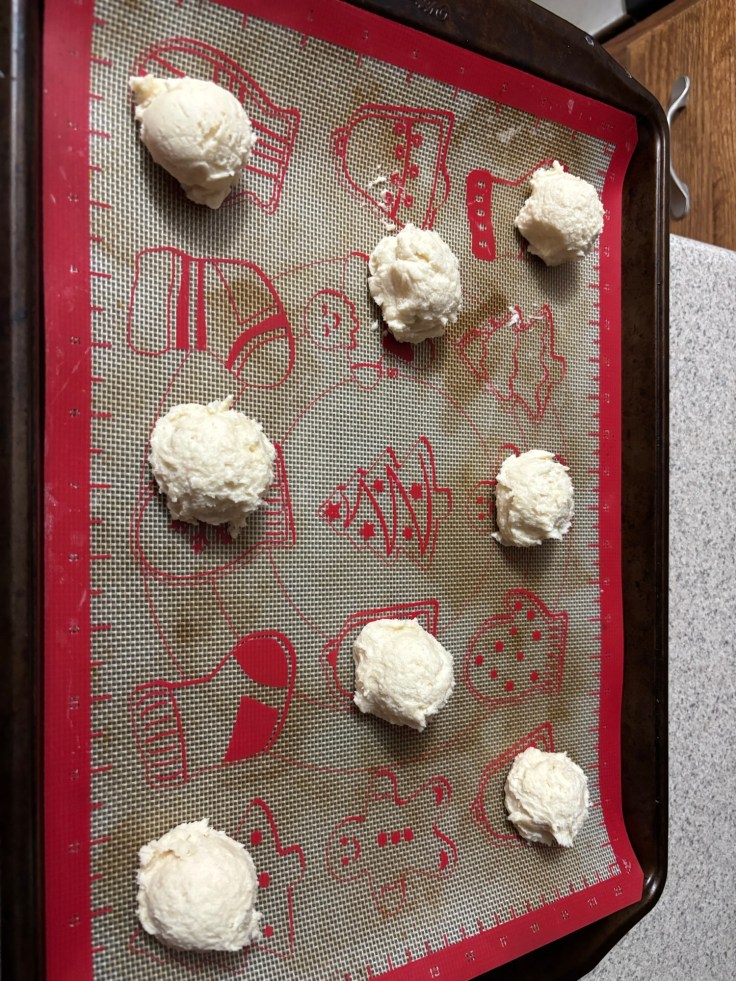 - Using a small cookie scoop, place 8 dough balls evenly spaced onto ungreased cookie sheet.